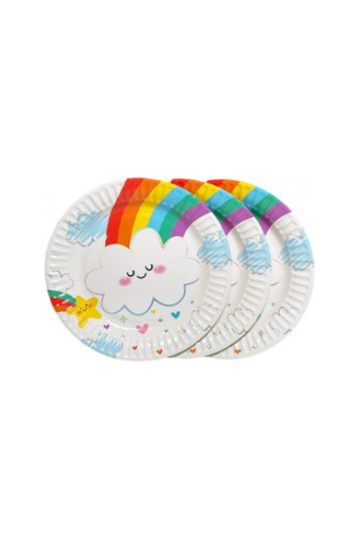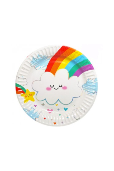 PLATO DE POLIPAPEL 17cm NUBE Y ARCO IRIS x 6 unidades