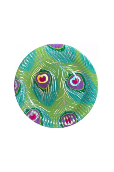 PLATO DE POLIPAPEL 17cm PAVO REAL (metalizado) x 6 un