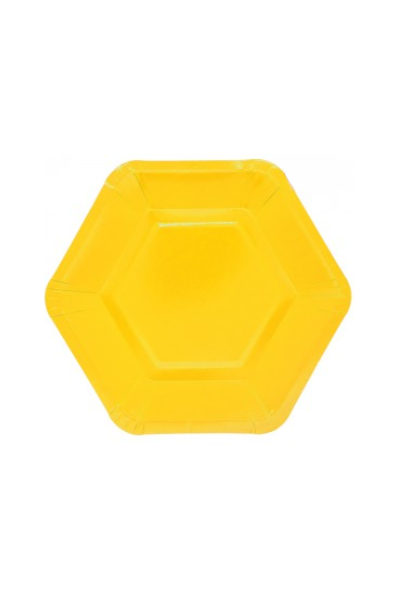 / PLATO DE POLIPAPEL HEXAGONAL 17cm AMARILLO x 6 unidades