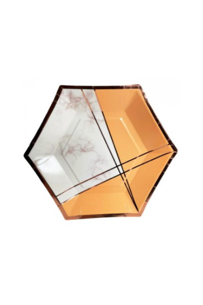 PLATO DE POLIPAPEL HEXAGONAL 17cm ROSA GOLD x 6 unidades