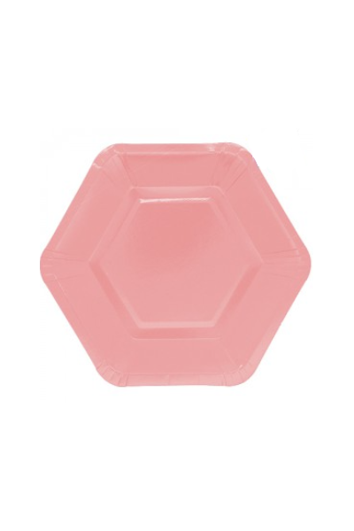 PLATO DE POLIPAPEL HEXAGONAL 17cm ROSA x 6 unidades