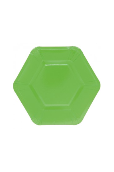 PLATO DE POLIPAPEL HEXAGONAL 17cm VERDE MANZANA x 6 unidades