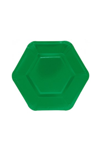 PLATO DE POLIPAPEL HEXAGONAL 17cm VERDE OSCURO x 6 unidades
