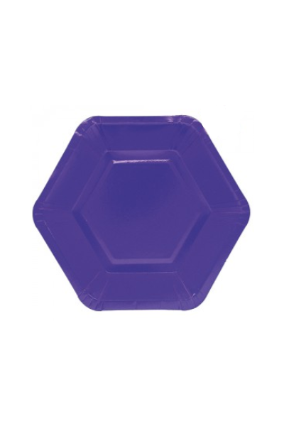 PLATO DE POLIPAPEL HEXAGONAL 17cm VIOLETA x 6 unidades