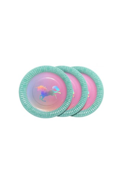 / PLATO POLIPAPEL 17cm UNICORNIO IRIDISCENTE x 6 unidades