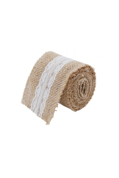 / ROLLO DE ARPILLERA NATURAL CON CENTRO ENCAJE BLANCO 200x6cm