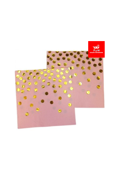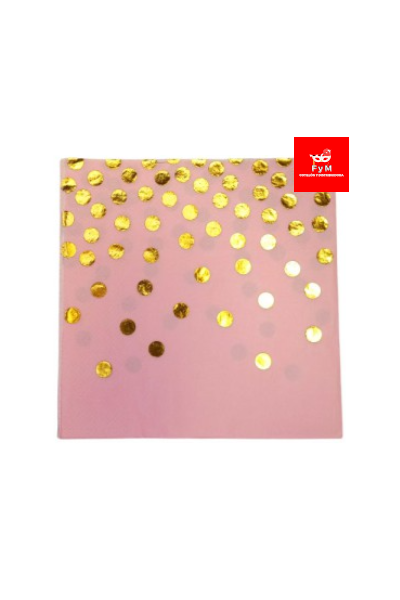 / SERVILLETA DE PAPEL *ROSA LUNARES DORADOS* x 12 unidades