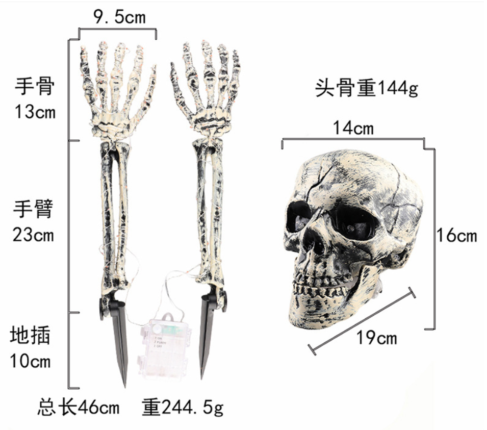 Set Calavera y Brazos de la CRIPTA Led – Brazos 46cm, Cráneo: 14x16x19cm. Pilas no incluidas: 3 pilas AA