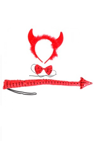 SET HOT DIABLA (Vincha cuernitos c/plumas + moño + cola)