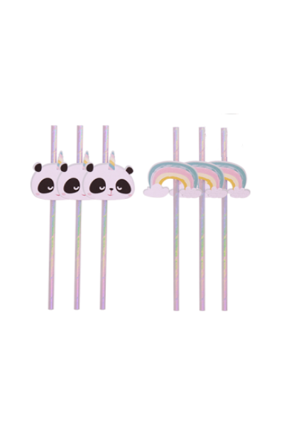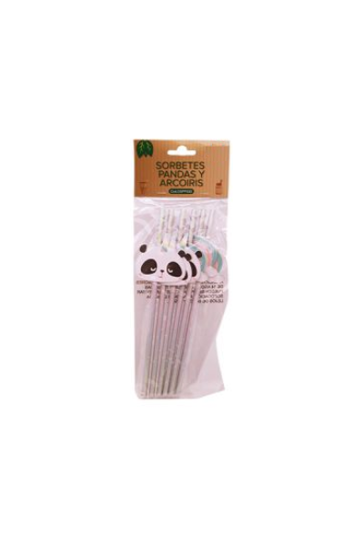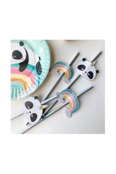 / SORBETES DE POLIPAPEL DECORADO PANDA Y ARCOIRIS x 6 unidades