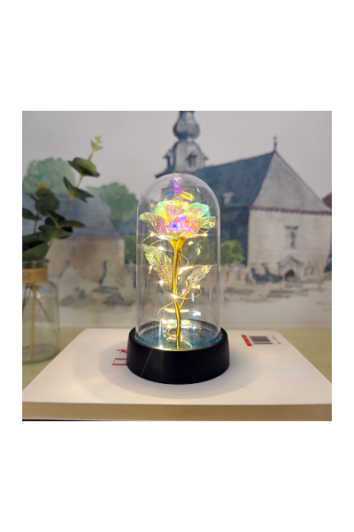 DECO SOUVENIR CRISTAL LAMPARA LED *ROSA ETERNA* DORADA 15cm X 8cm