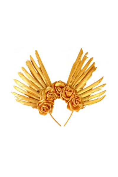 TIARA DE DIOSA CON PLUMAS DORADAS