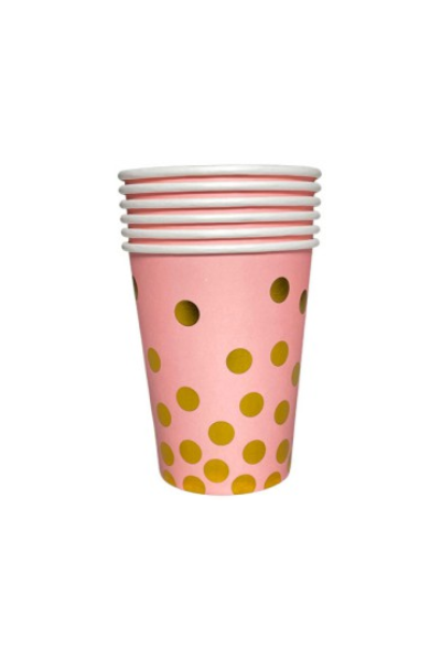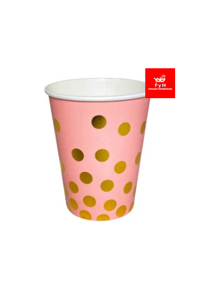 VASO DE POLIPAPEL ROSA LUNARES DORADOS 266cc x 6 un.