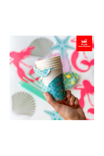 / VASO DE POLIPAPEL SIRENA DE MAR (vaso + cubrevaso) 266cc x 6 un.