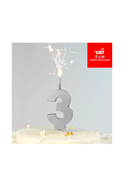 VELA BENGALA NUMERO PLATEADA Nº 3