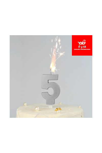 VELA BENGALA NUMERO PLATEADA Nº 5