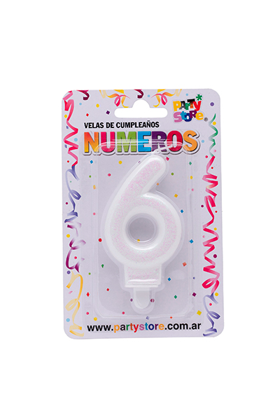VELA NUMERO BLANCAS BRILLOS Nº6