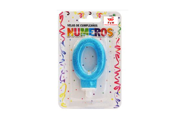 VELA NUMERO CELESTE BRILLOS Nº0