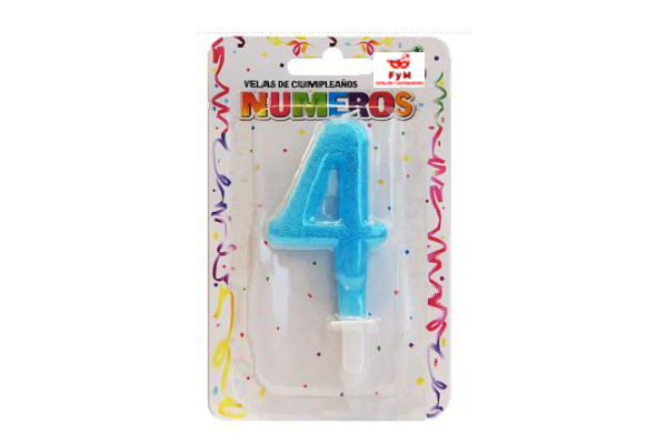 / VELA NUMERO CELESTE BRILLOS Nº4