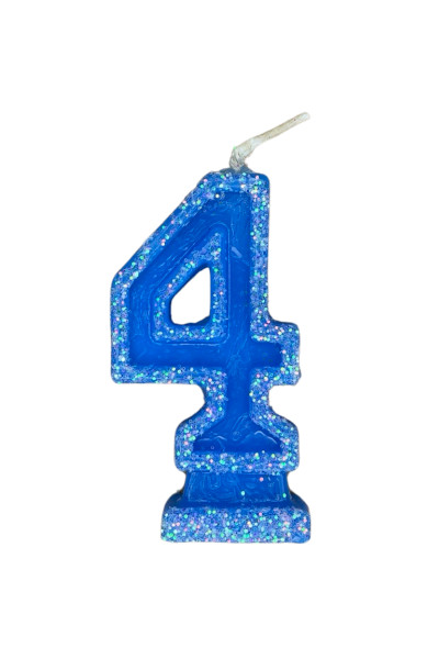 VELA NÚMERO DORI GRANDE BRILLO AZUL 4 (x10)