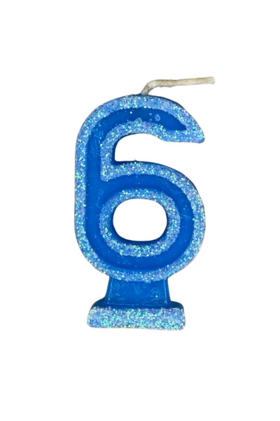 VELA NÚMERO DORI GRANDE BRILLO AZUL 6 (x10)