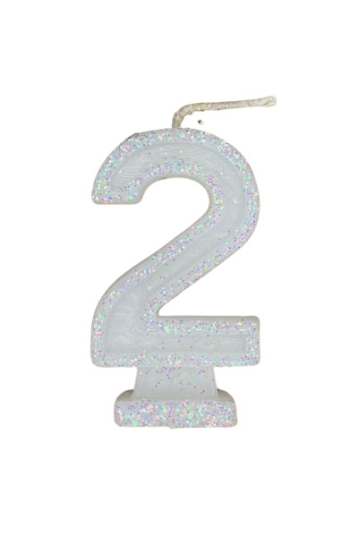 VELA NÚMERO DORI GRANDE BRILLO BLANCO 2 (x10)