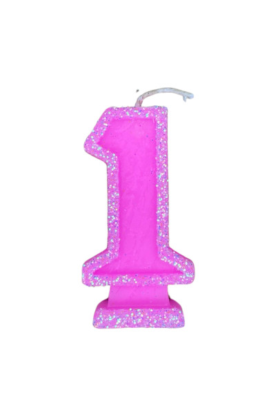 VELA NÚMERO DORI GRANDE BRILLO ROSA 1 (x10)