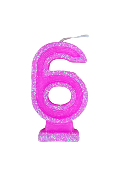 VELA NÚMERO DORI GRANDE BRILLO ROSA 6 (x10)