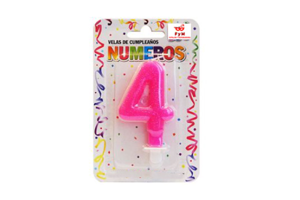 VELA NUMERO ROSA BRILLOS Nº4