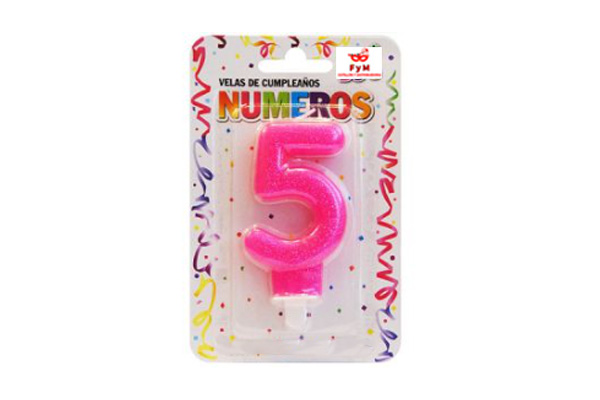 / VELA NUMERO ROSA BRILLOS Nº5