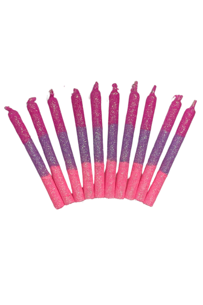 VELA TRICOLOR FUCSIA, ROSA Y LILA x10