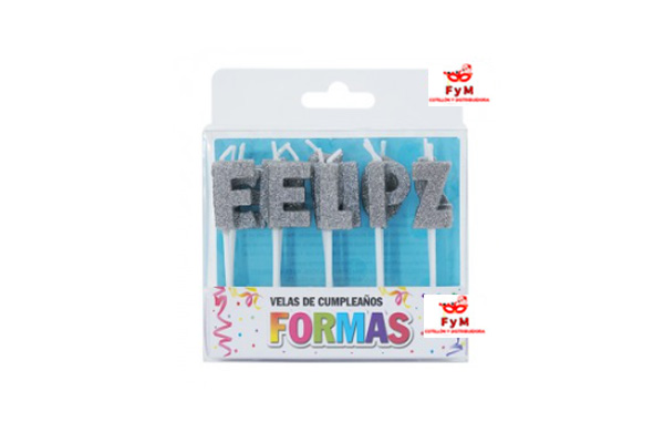 VELAS FORMAS – SET FELIZ CUMPLE PLATEADO