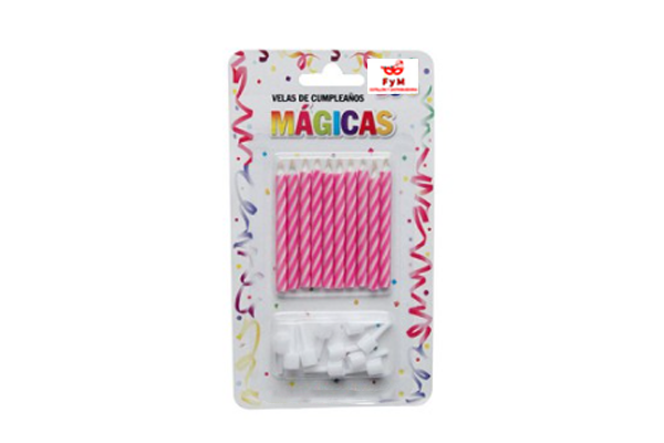 / VELAS MAGICAS MAGENTAS – Blister x 10un. (se vuelven a encender)