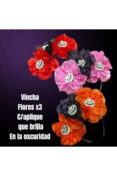 / VINCHA FLORES DE TELA Modelo Frida Con apliques q brillan en la oscuridad