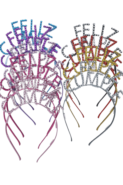VINCHA PLASTICA C/FALSO STRASS FELIZ CUMPLE/ES MI CUMPLE ¡Elegí colores!