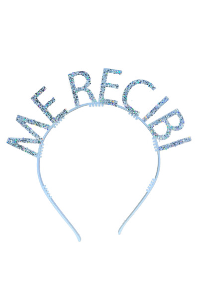 VINCHA PLASTICA CON GIBRE ME RECIBI PLATEADA